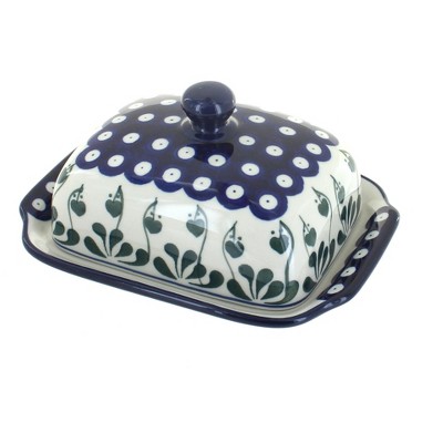 Add both charm and versatility to your kitchen with our handmade and hand-painted butter tub, crafted in Poland by skilled artisans. Measuring 7.5 inches by 5 inches, this generously sized tub is ideal for storing butter, but its practical design also makes it perfect for keeping tea bags, sweetener packets, or small kitchen essentials neatly organized. Each piece is decorated with traditional hand-painted patterns, making every tub a unique work of functional art that brings color and authenticity to your table or countertop. Crafted from durable stoneware, it is designed for everyday use and is safe for the microwave, dishwasher, and freezer, combining timeless craftsmanship with modern convenience. Whether used at breakfast, tea time, or as part of your entertaining setup, this butter tub adds beauty, function, and artisanal charm to your home.