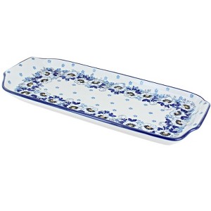 Bring both beauty and versatility to your table with this handcrafted serving tray, a piece designed to be as practical as it is elegant. Measuring 12.5" x 5.5", it’s perfectly sized for serving fresh bread, appetizers, small bites, or as a stylish base for a sugar and creamer set. Its elongated shape makes it a standout for entertaining, while also being useful for everyday meals and coffee service. Each tray is handmade and hand-painted in Poland, decorated with vibrant, traditional patterns that transform a simple serving piece into a unique work of art. Crafted from durable, high-fired stoneware, it’s praised for its strength, easy cleanup, and resistance to chips and scratches, making it a reliable piece for years of use. Safe for the microwave, dishwasher, and freezer, this serving tray blends authentic craftsmanship with modern convenience. Whether hosting guests or adding charm to your daily routine, it transitions seamlessly from kitchen to table, bringing heirloom-quality artistry to every occasion.