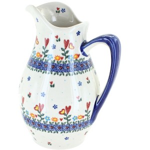 Serve in style with our collection of hand-painted ceramic pitchers, a perfect blend of artistry and function for your kitchen or table. With a 1.5-quart capacity and standing 9 inches tall, this pitcher is ideal for serving everything from fresh lemonade and iced tea to sangria, margaritas, or even water at family meals. Handmade and hand-painted in Poland, each piece showcases vibrant patterns and timeless craftsmanship, making it both a functional vessel and a striking centerpiece. High-fired for strength and finished with a smooth double glaze, the pitcher is durable, chip-resistant, and easy to clean, ensuring years of reliable use. Safe for the microwave, dishwasher, oven, and freezer, it’s versatile enough for everyday dining and special entertaining alike. Use it on your table for gatherings, display it as a decorative accent, or give it as a thoughtful gift. With heirloom-quality craftsmanship and modern convenience, this pitcher is an elegant and practical addition to your collection.