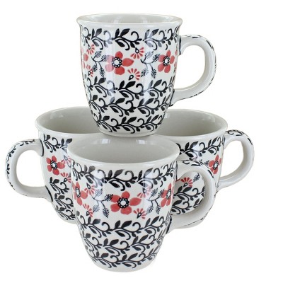 Classic hand-crafted mugs in a set of four. Sip your morning coffee, hot cocoa, and cozy teas from our durable ceramic mugs. A classic silhouette and painted designs offer a comfortable and stylish option while the glaze protects from coffee stains. Dishwasher safe for convenient cleanup. 3.75 inches tall, 8 oz.