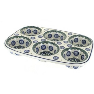 Bake in style with this beautifully crafted muffin pan, a functional piece that adds artistry to your everyday baking. Measuring 11.5" x 8" with cups that are 2.85" in diameter and 1.25" deep, itÂ’s perfectly designed for muffins, cupcakes, mini quiches, or individual desserts. Each pan is handmade and hand-painted in Poland, featuring vibrant, traditional patterns that make every bake a little more special and every piece a one-of-a-kind treasure. Crafted from durable, high-fired stoneware, this pan delivers even baking, excellent heat retention, and resistance to chips and scratches, ensuring long-lasting performance. Safe for the oven, microwave, dishwasher, and freezer, it offers modern convenience while maintaining the timeless craftsmanship of Polish pottery. Beautiful enough to bring straight from the oven to the table, it transforms muffins or cupcakes into a presentation piece, blending function with heirloom-quality charm. Whether for breakfast, entertaining, or holiday baking, this muffin pan adds color, tradition, and elegance to your kitchen.