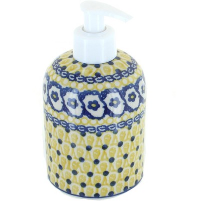 Add a pop of color and artistry to your home with this soap dispenser from Ceramika Artystyczna, handcrafted and hand-painted by skilled artisans in Poland. Featuring the vibrant patterns and intricate details that make Polish pottery so distinctive, each dispenser is a one-of-a-kind piece of functional art. Standing 5.5 inches tall, it is perfectly sized for use at either the bathroom or kitchen sink, where it can hold hand soap, dish soap, or even lotion. The sturdy ceramic body is double-glazed for durability, making it resistant to everyday wear and easy to clean, while the high-quality pump ensures smooth, reliable use. Designed to stand alone as a colorful accent or pair seamlessly with coordinating accessories—such as a matching toothbrush holder, soap dish, and bathroom cup—it helps create a cohesive and stylish bathroom set. Both practical and decorative, this dispenser makes a thoughtful gift or an elegant addition to your own home, blending everyday convenience with timeless artisan craftsmanship.