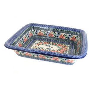 Bake, serve, and enjoy with this medium rectangular baker, a versatile dish thatÂ’s perfect for both sweet and savory favorites. Measuring 12.25" long x 10" wide x 2.75" high; 2.38" deep. Its medium depth makes it easy to layer ingredients while still providing even cooking throughout. Each baker is handmade and hand-painted in Poland, showcasing vibrant, traditional patterns that ensure every piece is a one-of-a-kind treasure. Crafted from durable, high-fired stoneware, it delivers consistent baking results, excellent heat retention, and resistance to chipping, making it a reliable piece youÂ’ll reach for again and again. Safe for the oven, microwave, dishwasher, and freezer, this baker combines timeless artistry with modern convenience. Beautiful enough to serve directly at the table, it transitions seamlessly from kitchen to dining room, bringing heirloom quality and charm to every meal.