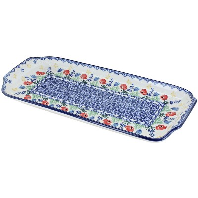 Save more when you purchase our 3-piece rectangular serving set, designed to cover all your entertaining and everyday dining needs. The set includes three versatile sizes: a small platter (9.75" x 7"), perfect for side dishes, desserts, or appetizers; a medium platter (11.25" x 8"), ideal for vegetables, cheeses, or shared meals; and a large platter (13.25" x 9.5"), generously sized for main courses, roasts, or festive holiday spreads. Together, these pieces create a coordinated serving set that gives you the flexibility to serve a variety of dishes in style. Handmade and hand-painted in Poland, each platter showcases vibrant patterns and artisan detailing that ensure every piece is a unique work of art. Crafted from durable, high-fired stoneware, they resist chips, scratches, and daily wear while maintaining their beauty for years of use. Safe for the oven, microwave, dishwasher, and freezer, they combine heirloom-quality craftsmanship with modern convenience. Whether used together or individually, this rectangular serving set offers incredible versatility, timeless artistry, and lasting quality for your table.