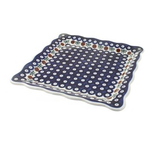 Add charm and versatility to your table with this beautifully handcrafted Polish pottery lunch plate. Measuring 9.5 inches square, it features a delicate scalloped edge that gives it a distinctive artisan touch. The shape is ideal for serving sandwiches, salads, or small portions, making it a practical choice for everyday dining as well as casual entertaining. Each plate is individually shaped and painted by hand, ensuring no two pieces are exactly alike and highlighting the artistry that makes Polish pottery so special. High-fired at extreme temperatures, the ceramic achieves long-lasting durability and resists chipping and wear, while the double-glazed finish preserves the vivid colors and intricate patterns for years to come. The smooth surface makes it easy to clean and safe for the microwave, dishwasher, and freezer, blending traditional craftsmanship with modern convenience. Whether you’re adding it to your existing collection or gifting it to someone who appreciates functional art, this square scalloped lunch plate is a timeless piece that brings both beauty and practicality to the table.