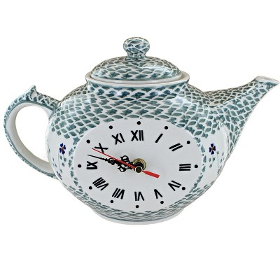 Add a touch of charm to your home with this whimsical teapot clock, the perfect accent for a mantel, buffet, or display shelf. Handmade and hand-painted by skilled artisans, it blends the artistry of Polish pottery with the functionality of a timepiece. The unique teapot shape brings a playful character to any space, while the vibrant, hand-painted patterns are carefully designed to coordinate with your pottery collection. Standing 7.5 inches tall and 11 inches wide, it makes a statement without overwhelming your décor, striking the right balance between decorative and practical. The vintage-style scalloped hour and minute hands add an extra layer of detail, complementing the hand-painted designs with an elegant touch. Ideal for a tea room, sunroom, or kitchen, this clock is double glazed for durability and easy cleaning, ensuring its beauty lasts for years to come. Both whimsical and timeless, it makes a thoughtful gift for collectors, tea lovers, or anyone who enjoys handcrafted artistry that brightens the home.