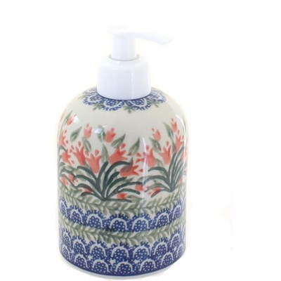 Add a pop of color and artistry to your home with this soap dispenser from Ceramika Artystyczna, handcrafted and hand-painted by skilled artisans in Poland. Featuring the vibrant patterns and intricate details that make Polish pottery so distinctive, each dispenser is a one-of-a-kind piece of functional art. Standing 5.5 inches tall, it is perfectly sized for use at either the bathroom or kitchen sink, where it can hold hand soap, dish soap, or even lotion. The sturdy ceramic body is double-glazed for durability, making it resistant to everyday wear and easy to clean, while the high-quality pump ensures smooth, reliable use. Designed to stand alone as a colorful accent or pair seamlessly with coordinating accessories—such as a matching toothbrush holder, soap dish, and bathroom cup—it helps create a cohesive and stylish bathroom set. Both practical and decorative, this dispenser makes a thoughtful gift or an elegant addition to your own home, blending everyday convenience with timeless artisan craftsmanship.