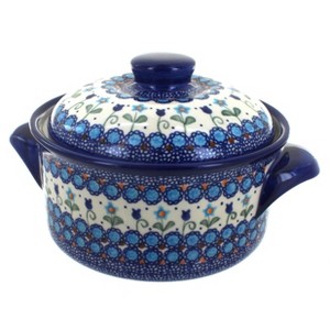 Blue Rose Polish Pottery 215 Vena Round Baker with Lid