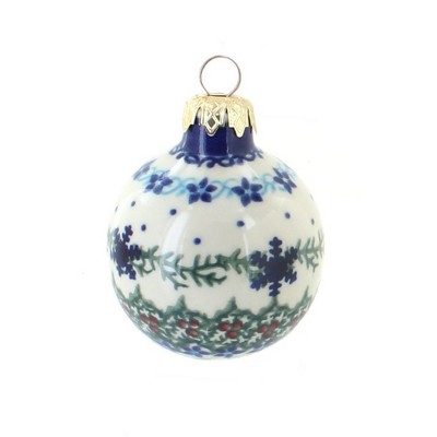 Great for your tree - a perfect gift for someone special! 2.25" diameter The Art of Polish Pottery, as we know it today, started as local folk art centuries ago in the German province of Silesia. The first known pieces of “Bunzlauer” stoneware dating back to the 16th century were crafted by hand and decorated with a folk art stamping technique using potatoes. Original designs were inspired by the peacock feather using the colors of cobalt blue, sage green and ferrous red. These designs and colors are still the inspiration for modern day patterns.Today, skilled Polish artists still individually handcraft and hand decorate each piece using small sponges to stamp each pattern and color. After the process of mixing ingredients, molding the pottery, applying the decorations and glaze, the pottery is twice fired. This process makes the pottery extremely durable, it will not crack or chip easily, and it is perfect for use in the microwave, dishwasher, oven and freezer. Along with our pottery, we have sourced a range of absolutely beautiful hand blown glassware from Poland. It is the perfect addition to your Polish Pottery Collection!