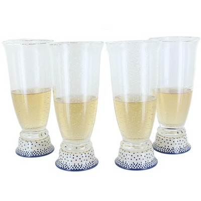 From Manufaktura, this set of two handcrafted beer glasses beautifully combines traditional Polish pottery with artisanal glassmaking. Each glass is mouth-blown from seeded glass, giving it a textured, sparkling look that highlights the skill of handmade craftsmanship. Standing 8 inches tall with a generous 16-ounce capacity, they are perfectly sized for lagers, ales, or craft beers. The signature feature of these glasses is the Polish pottery base, designed to coordinate seamlessly with your existing pottery pieces and add a colorful, artistic touch. The blend of clear seeded glass with the vibrant pottery bottom creates a design that is both rustic and modern, making these glasses equally suitable for casual evenings or festive entertaining. Sold as a set of two, they are perfect for sharing with a partner, gifting to collectors, or starting a unique glassware collection of your own. Durable enough for everyday enjoyment yet elegant enough for display, these beer glasses celebrate Polish artistry while elevating your drinkware experience.