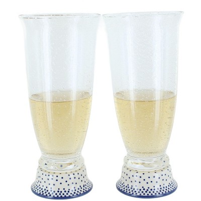 Blue Rose Polish Pottery Manufaktura 2pc Wine Glass Set