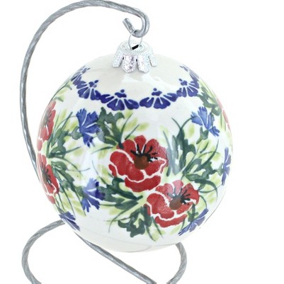 Celebrate the holidays with Polish pottery and add a truly unique touch to your seasonal décor with our hand-painted ball ornament and stand. The ornament measures 4 inches wide and is beautifully displayed on a 6-inch-high stand, making it perfect for showcasing on mantles, side tables, or festive centerpieces. Handcrafted and hand-painted in Boles?awiec, Poland, each ornament features vibrant colors and traditional motifs that make Polish pottery so beloved, ensuring that every piece is one of a kind. This ornament is more than just a decoration—it’s a keepsake that can be enjoyed year after year, bringing artistry and tradition into your home. Its elegant stand makes it easy to display anywhere, whether you’re adding it to your own holiday collection or gifting it to someone special. A thoughtful present for friends, family, or hosts, this ornament and stand set is a timeless way to celebrate the season with heritage and style.
