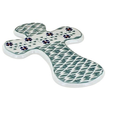 Beautifully hand-painted and full of character, these ceramic crosses are a meaningful and decorative accent for any home. Each piece is carefully crafted by skilled artisans and finished with intricate, colorful designs that highlight the artistry of traditional Polish pottery. Measuring 7 inches by 4.5 inches, the cross is perfectly sized to add a pop of vibrant color to any space without overwhelming your décor. A small hanging hole at the top makes it easy to display on a wall, whether in a living room, entryway, bedroom, or prayer space. The double-glazed finish ensures durability, enhances the brilliance of the hand-painted details, and makes the surface easy to clean. More than just a decorative item, these crosses carry a sense of tradition and spirituality while also serving as a unique piece of folk art. Perfect for gifting on special occasions such as baptisms, weddings, confirmations, or housewarmings, this hand-painted cross is both meaningful and timeless, blending faith, beauty, and craftsmanship.