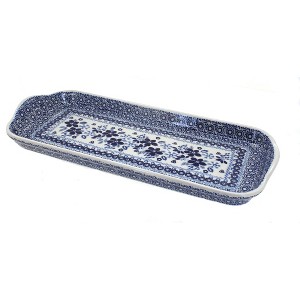 Bring both beauty and versatility to your table with this handcrafted serving tray, a piece designed to be as practical as it is elegant. Measuring 14.25" x 6.25", it’s perfectly sized for serving fresh bread, appetizers, small bites, or as a stylish base for a sugar and creamer set. Its elongated shape makes it a standout for entertaining, while also being useful for everyday meals and coffee service. Each tray is handmade and hand-painted in Poland, decorated with vibrant, traditional patterns that transform a simple serving piece into a unique work of art. Crafted from durable, high-fired stoneware, it’s praised for its strength, easy cleanup, and resistance to chips and scratches, making it a reliable piece for years of use. Safe for the microwave, dishwasher, and freezer, this serving tray blends authentic craftsmanship with modern convenience. Whether hosting guests or adding charm to your daily routine, it transitions seamlessly from kitchen to table, bringing heirloom-quality artistry to every occasion.