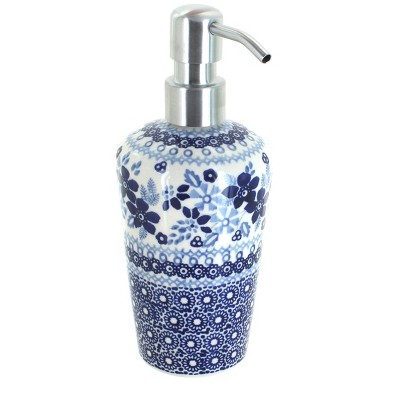 Bring both artistry and function to your home with this handcrafted ceramic soap dispenser, designed to add a vibrant pop of color to any kitchen or bathroom sink. Standing 6.75 inches tall, it is perfectly sized for hand soap, dish soap, or even lotion, making it a versatile accessory for daily use. Each dispenser is hand-painted by skilled artisans, featuring the vivid colors and intricate patterns of Polish pottery, ensuring that every piece is a unique work of art. Equipped with a durable stainless steel pump, it provides smooth and reliable dispensing while complementing the beauty of the ceramic body with a modern touch. Double-glazed for durability and easy cleaning, this dispenser is built to last while retaining its bright, decorative charm. Pair it with a matching tissue box and soap dish to create a cohesive bathroom or kitchen set, or let it stand alone as a functional accent piece. Both practical and decorative, this soap dispenser makes a thoughtful gift or a beautiful addition to your own home.