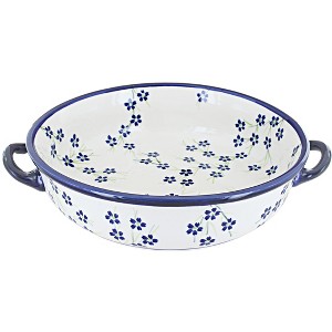 Enjoy both style and function with this round casserole with handles, a versatile piece perfect for everyday meals and entertaining. Measuring 10.38" long x 2.62" high; 2.25" deep. Designed with sturdy side handles, itÂ’s easy to carry from oven to table, making serving both practical and elegant. Each casserole is handmade and hand-painted in Poland, showcasing vibrant patterns and timeless artistry that make every piece unique. Renowned for its even baking, excellent heat retention, and easy cleanup, this durable stoneware dish is built to last through years of use. Safe for the oven, microwave, dishwasher, and freezer, it blends authentic craftsmanship with modern convenience. Beautiful enough to double as a serving dish, this round casserole with handles adds charm, function, and heirloom-quality artistry to every meal you prepare and share.