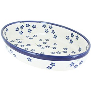 Blue Rose Polish Pottery 349 Zaklady Small Oval Baker