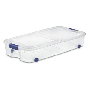 Blue Transparent 66 Quart Underbed Storage Box with Locking Lid and Wheels for Space-Saving Organization