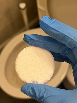 Placed in top of my toilet and fizzed up and disappeared! Thought this was going to last a few flushes but it’s just a one time very expensive cleaner. You can use backing soda and white vinegar and it will do the same exact thing for WAY cheaper.