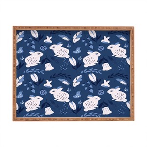 BlueLela Rabbits and Flowers Rectangular Bamboo Tray - Deny Designs