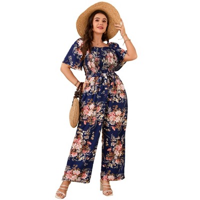 Bring effortless charm to your everyday wardrobe with our plus size loose floral jumpsuit for women. Crafted with a breathable fabric, this one piece outfit is designed for comfort and easy wear during the warmer months. The short ruffle sleeves add a sweet, feminine touch, while the wide leg cut ensures plenty of room to move freely throughout your day. An elastic waist provides gentle shaping and a flexible fit, making this jumpsuit comfortable for a variety of body types. The floral print brings a fresh, lively look that’s perfect for both casual outings and relaxed gatherings. Dress it up with your favorite sandals and accessories for a chic daytime ensemble, or keep it simple with sneakers for an everyday go-to look. This jumpsuit features a soft texture that is gentle on the skin and easy to care for, making it ideal for frequent wear. The all design means you can simply slip it on and head out the door, saving you time in the morning. Whether you’re running errands, meeting friends, or enjoying a relaxed day at home, this jumpsuit offers style with minimal effort. Available in a range of plus sizes, it is tailored to provide a comfortable and flattering look for every shape. If you have any questions about sizing or fit, our helpful customer service team is always ready to assist you, ensuring you find the perfect piece for your summer closet.