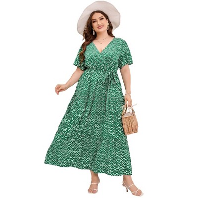 Look effortlessly elegant in our Plus Size Maxi Dress, designed to flatter your curves with fashionable comfort. Made from 100% lightweight polyester, this floral dress features a flattering surplice V-neck that flatters all body types, while the adjustable tie waist allows you to customize the fit. The lantern sleeves add a romantic touch, billowing gently for movement and breeze. Flowing gracefully to a maxi length, this dress provides full coverage while keeping you cool in warmer weather. The all-over floral print brings vibrant energy to your wardrobe, perfect for everything from garden parties to casual summer days. The wrinkle-resistant fabric makes this dress ideal for travel, maintaining its beautiful drape throughout wear. Available in multiple colors and sizes to suit your personal style. Pair with sandals for daytime or dress it up with wedges for evening occasions - this versatile maxi dress is sure to become your warm-weather favorite.
