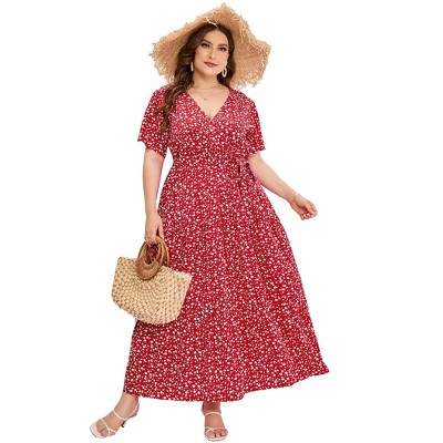 Celebrate summer in comfort and style with our Plus Size Summer Maxi Dress, crafted from 100% polyester for a lightweight and breathable wear. This dress features a flattering surplice neckline paired with flutter sleeves that add a soft, feminine touch to your look. The adjustable tie waist enhances your shape while providing a comfortable fit, and the flowing A-line skirt offers ease of movement and a graceful appearance. Designed with plus size women in mind, this dress combines style and practicality, making it perfect for warm weather occasions. The fabric is wrinkle-resistant, easy to care for, and keeps its fresh look throughout the day. Available in a variety of colors and patterns, this maxi dress easily transitions from casual outdoor events to more formal gatherings. Pair it with sandals for daytime outings or dress it up with heels and accessories for evening occasions. Add this versatile piece to your wardrobe for effortless summer elegance.