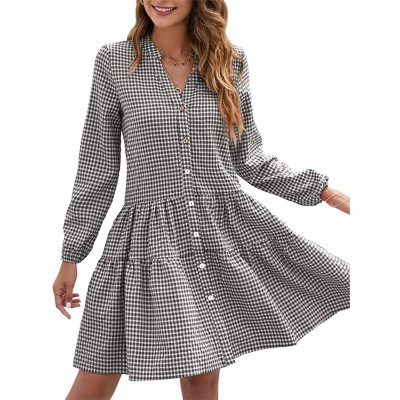 【CLASSIC PLAID PATTERN FOR TIMELESS STYLE】Featuring an plaid pattern, this dress offers a timeless and versatile look that adds visual interest and warmth to your wardrobe. The checked design is perfect for the fall and winter seasons and pairs well with a wide range of accessories and footwear.
