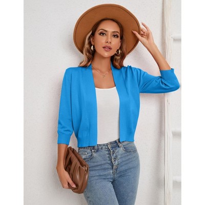 Product Name: BLUEMING Womens Soft Knit Sweater Cardigan Bracelet Sleeve Open Front Cardigan Above Hip Length Cardigan, Lake Blue - 4XL