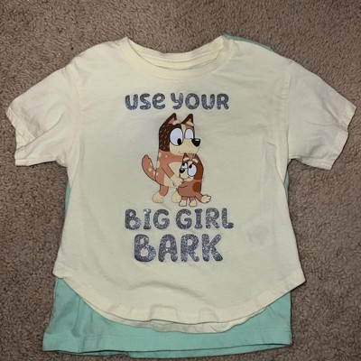 Upgrade your little girl's wardrobe with this adorable 3 pack of Bluey t-shirts! Perfect for toddlers to big kids, these shirts feature vibrant colors and fun designs of Bluey and her friends and family that your child will love. Made from soft and breathable fabric, they provide all-day comfort and durability. Whether she's playing at the park or lounging at home, these t-shirts are a versatile and stylish choice. With a variety of sizes available, you can find the perfect fit for your growing girl. Don't miss out on this must-have addition to your child's closet!