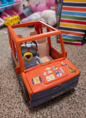 [This review was collected as part of a promotion.] This is the cutest lil bluey jeep with a stuffed Bluey driver. The jeep is a lot bigger than I expected and my kiddo spent hours with it playing cars in the dirt. Such a fun toy!