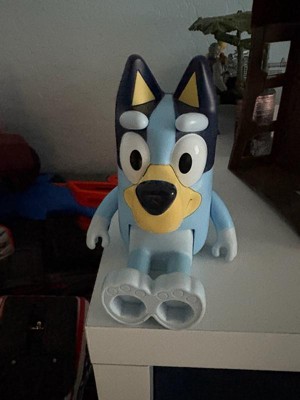 [This review was collected as part of a promotion.] Very cute Bluey toy, reminds me a lot of the smaller figures but just four times the size. The phrases are cute and at a nice volume (some toys are just too loud). My only complaint is that in order to to trigger the phrases you have to boop Bluey snout, but the button is a little finicky… a little of an angle push doesn’t always trigger. My kids enjoy playing with it, nonetheless.
