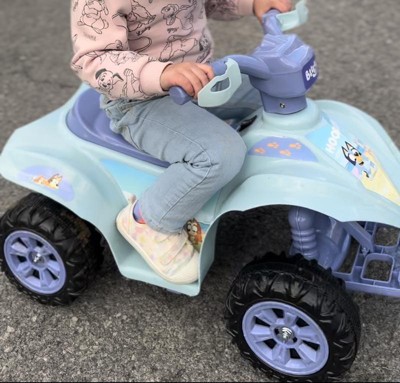 - Powerful 6V Motor for Thrilling Adventures: Experience the thrill of outdoor play with the Bluey 6V ATV Quad's motor, allowing your little ones to reach speeds of 1.25-1.55 MPH. Let their imaginations run wild as they zoom around the yard or park