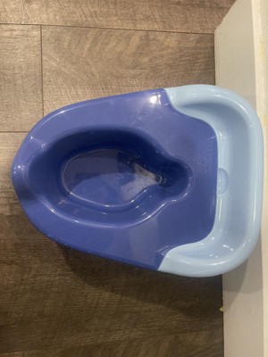 I love that this has a shield in the front for little boys. This is smaller and lower to the ground for really little ones, which I loved. I didn't like that he is able to push himself back on it so that he's not sitting over the hole. Ultimately I returned it for a saddle shape potty.