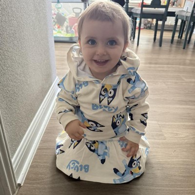 A: The dress features an all-over print design with a cute and stylish look for toddlers.