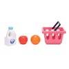 - Includes sound activated removable grocery scanner, cell phone, and removable handheld basket with pretend milk, apple, and orange.