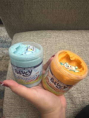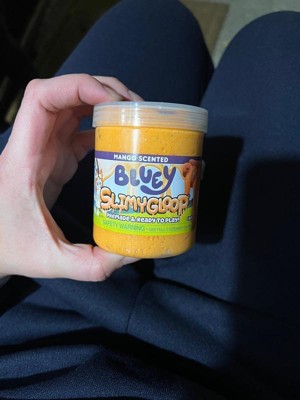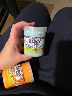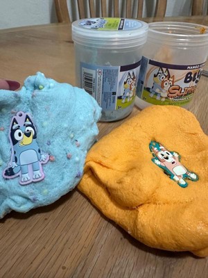 - The blue, cotton candy-scented slime and the light orange mango-scented slime have cloud-like textures that also feature mini foam balls, glitter, and soft rubber charms of Bluey and Bingo, allowing little pups to feel a connection to their favorite on-screen character while they have screen-free fun!