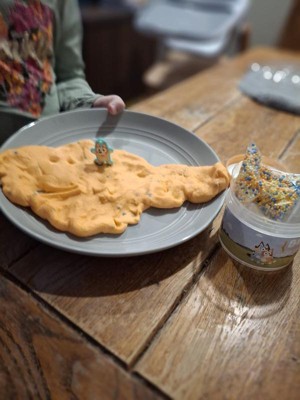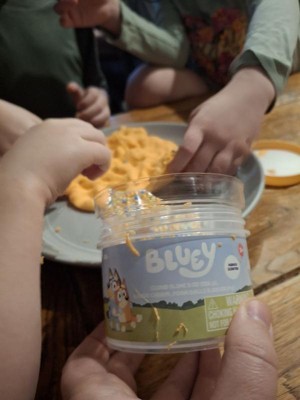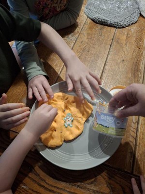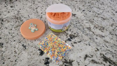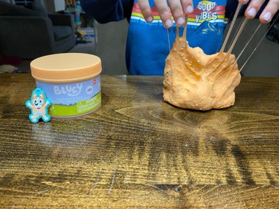 [This review was collected as part of a promotion.] I have 6 kiddos and they all love slime, and Bluey, so this was a perfect opportunity for them to play. This slime was interesting. It says it smells like mango, and while the slime itself didn't really smell, your fingers definitely smell like mango after playing with it. The slime was nice and airy, so long as no water touches it. Unfortunately, one of my kids washed their hands before playing with the slime but didn't fully dry their hands and that definitely made the slime infinitely messier. Everywhere the moisture touched got extremely sticky and stringy, as you can see on the jar in some of the photos. Even sweaty palms caused this. Morale of the story? This slime is amazing, as long as no moisture comes in contact with it. I really appreciated the extra pieces (cute Bingo and little beads). It made it more fun for everyone. They made a pizza, smiley faces, donuts, and more. It was a very solid way to keep them entertained.