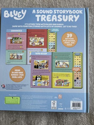 Join Bluey, Bingo, and their friends on a fun, sound-filled reading adventure with the Bluey Sound Storybook Treasury! This adorable padded hardcover collection features four popular stories from the hit TV series, brought to life with 39 interactive sound buttons. Kids will enjoy pressing the buttons to hear favorite character voices, catchy songs, and funny sound effects that make story time even more exciting.
