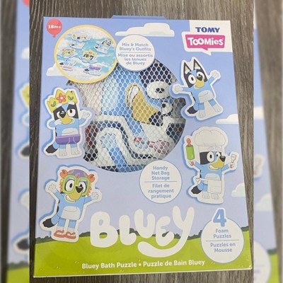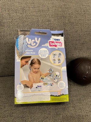 - Bath Time with Bluey: This toddler bath toy puzzle features 8 large, soft foam pieces that stick to tile when wet for creative play while toddlers are in the bathtub