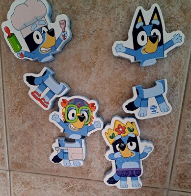 - Mix & Match Fun: The Bluey puzzle pieces combine into 4 unique Bluey poses with different outfits, and the tops and bottoms can be swapped up for more bath time giggles