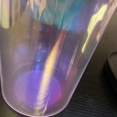 Blush Iridescent Cute Drink Tumbler | Reusable, Leak-Proof, Travel, Clear Plastic, Slim, Iced Coffee Cup with Seal, Screw-On-Lid, and Straw, 24oz