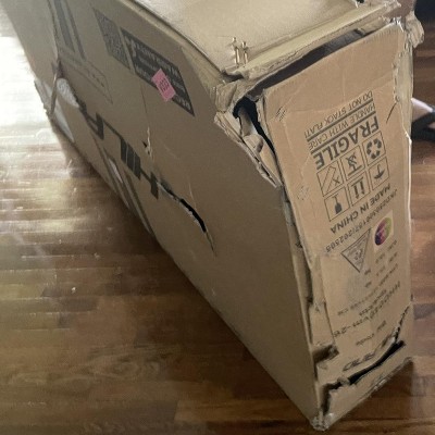 The box came damaged from FedEx. The bike is scratched up. The wheel is bent and the brakes are broken. Plan to return. Very disappointed.