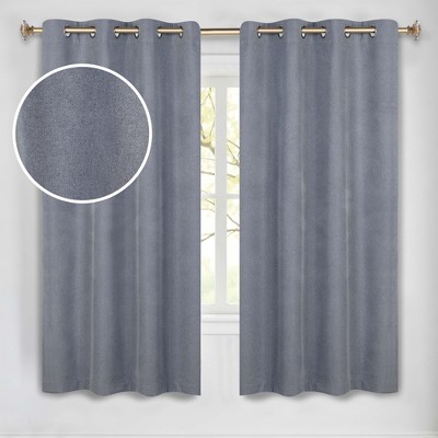 Chenille Room Darkening Machine Washable Semi-Blackout Curtain Panels, Set of 2, 52"x63", Grey - Blue Nile Mills