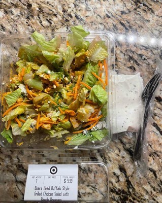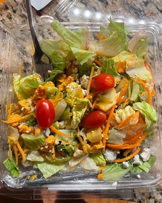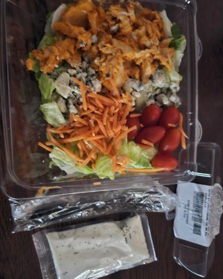 [This review was collected as part of a promotion.] I bought this for my husband because we have liked other meals from this brand and he was very pleased with this Buffalo chicken salad! The chicken was well cooked and covered in Buffalo sauce and he really liked the lettuce, blue cheese and tomatoes! It was a great size for the price too! I received an incentive to write this review.