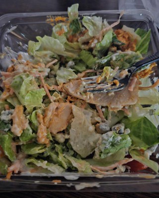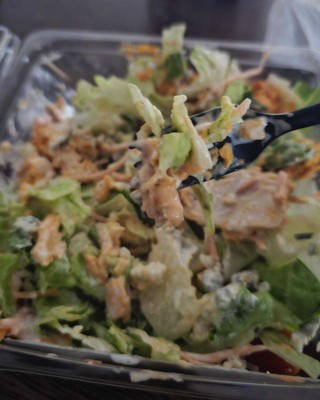 [This review was collected as part of a promotion.] This is a decent already made salad. The Buffalo chicken was not too spicy and I like that there was a pocket in the front for the ranch dressing and a fork. The salad was iceberg lettuce which is not my favorite and a few pieces were brown but it is good for a grab and go salad. I received an incentive to write this review.