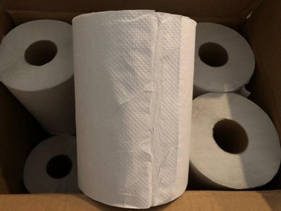 Dependable, absorbent, thick, and strong towels for hand drying and general cleaning. Hardwound, non-perforated rolls. Embossed design for added absorbency. Made of recycled materials. Dispensers sold separately. The economical and reliable choice for high-traffic restrooms in industrial settings, offices, schools, retail, and restaurant spaces. Drying with paper towels is safer than air dryers, which can redistribute even more germs on hands. Keep hands clean and dry by only touching the towel that's taken. Dispensers sold separately.
