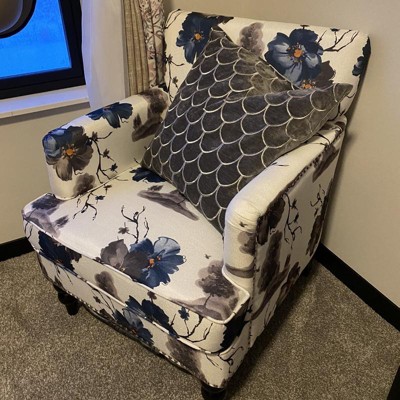 The chair is not comfortable at all. It really looks like it would be. The pattern is very nice. Unfortunately comfort is important in a chair. It also seems small for an adult. I am 5’6” and the chair even seemed small for me. I was hoping for these to be comfy and keepers. Will be returning.