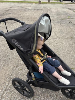 The sunshade on the BOB stroller is truly remarkable! I was amazed by how effortlessly it could be set up and folded down. The seat recline functionality is also superb, allowing for comfortable on-the-go napping. It delivers an incredibly smooth ride and handles various surfaces like pavement, grass, and trails with ease. The rotating front wheel is a game changer for everyday use, but I appreciate the option to lock it for running purposes. Overall, this is a top-notch choice for parents seeking convenience, versatility, and performance.