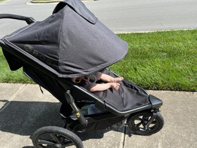 Baby loves the smooth ride. My biggest gripe with this stroller and ALL strollers is the sunshade doesn’t extend all the way to the end of the footbed, so my baby’s feet/legs aren’t protected from the sun. Big missed opportunity in my opinion. We’ve also had trouble with the front wheel when walking in unlocked position - it gets stuck and sometimes fishtales back and forth.